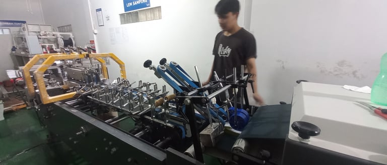 Menerima jasa pengeleman kemasan dengan menggunakan mesin lem samping otomatis. Pengerjaan lem lebih rapi dan cepat.