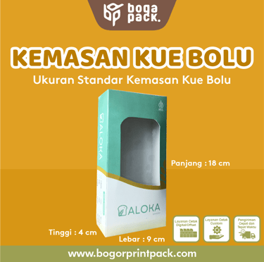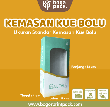 Kemasan Kue banyak digunakan sebagai bahan kemasan produk berupa: Bolu, Pia, brownies dan kue lainnya. Dapat dicetak full color (4 warna) ataupun 1 warna saja sesuai desain.